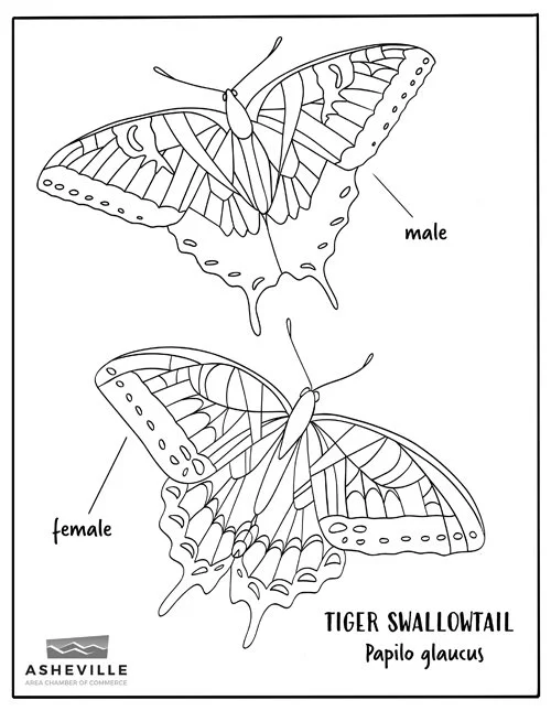 Look for the vibrant yellow and black striped wings of the Eastern Tiger Swallowtail in front of the Asheville Area Chamber of Commerce and Visitor Center. Thanks to Dr. Matt Bertone, NC State University, for providing the photo for the giant wings!